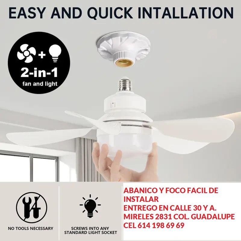 Abanico con foco y contol de varias velocidades para su instalacion como poner un foco